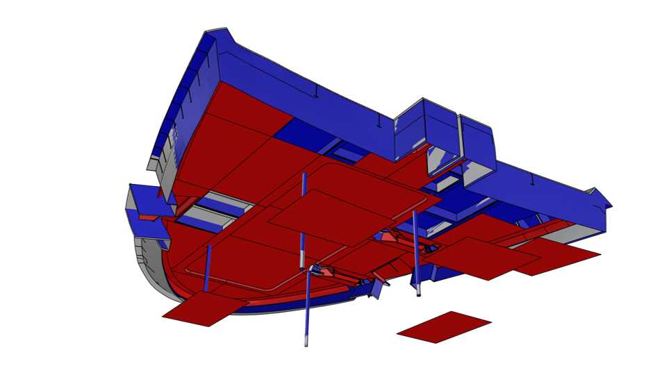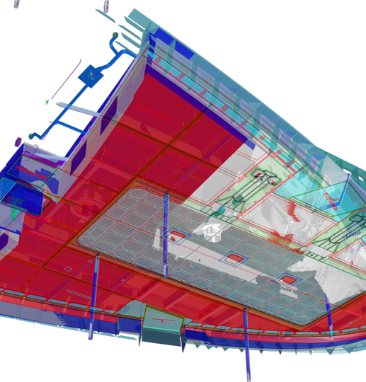 3DT Solutions has had the privilege of working on several projects aboard, including a custom carbon fibre tide-ring boarding stair system. One of the most exciting projects was designing a deck-head panel system beneath the newly added fore-peak heli-deck. Using 3D scans of the internal space, structure, and large hardware for a shell door, 3DT developed the entire panel system.