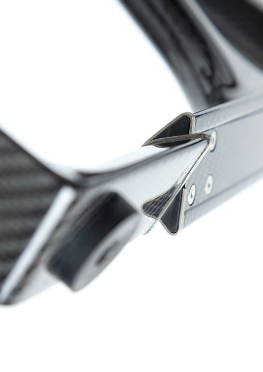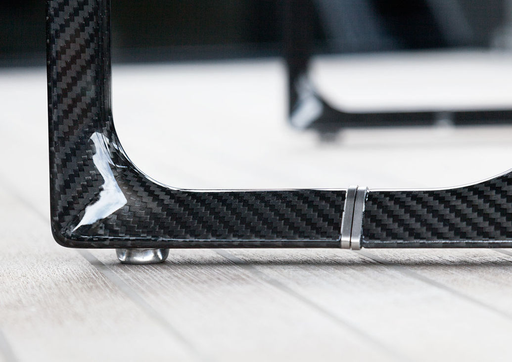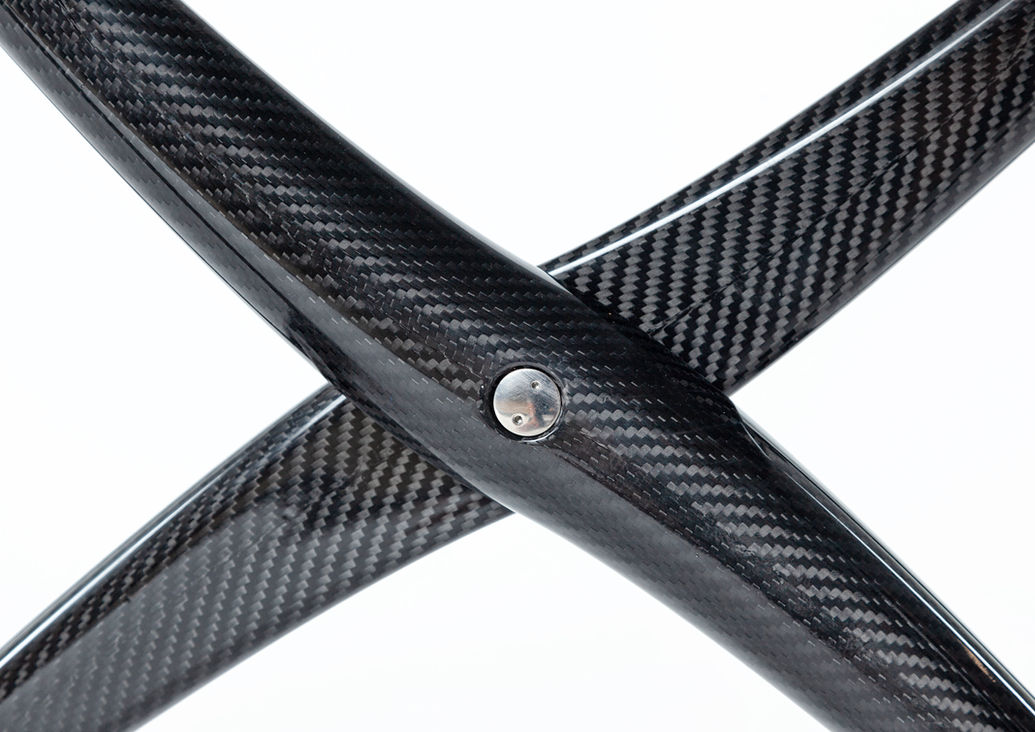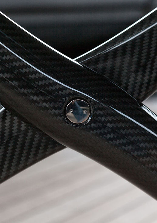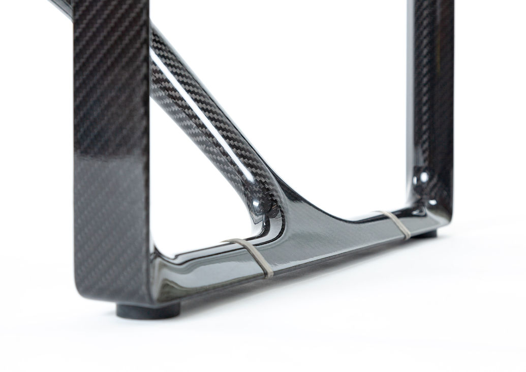 The pre-preg carbon weave is laminated with extraordinary precision, ensuring that the orientation of the fibers beautifully hides any tooling split lines. The result are carbon legs that looks as if it were sculpted from a single piece of material.
