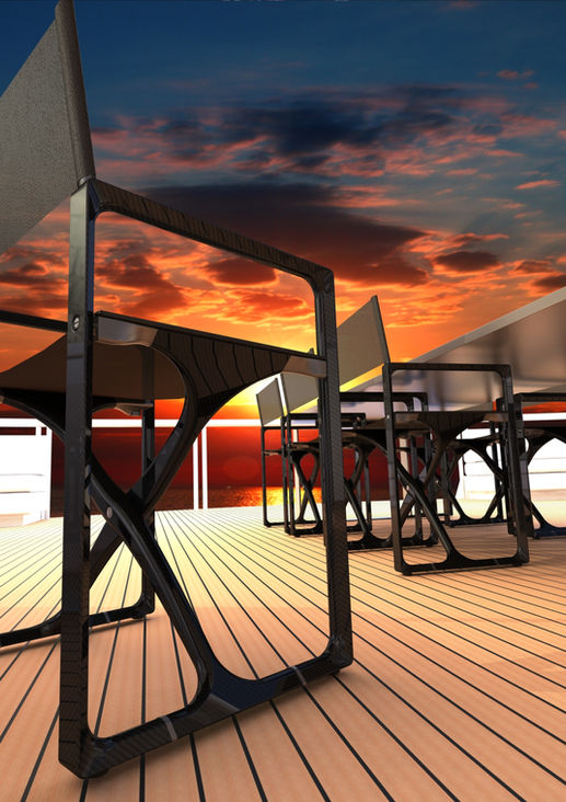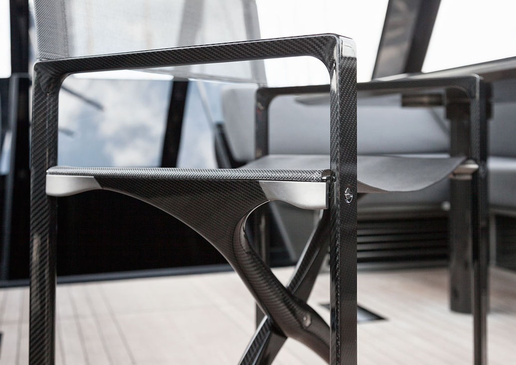 The epitome of luxurious design, these folding Carbon Fibre-Titanium deck chairs are truly a work of art. Commissioned by the owner of a prestigious sailing yacht, they combine breathtaking aesthetics with unparalleled craftsmanship, leaving all who see them in awe.