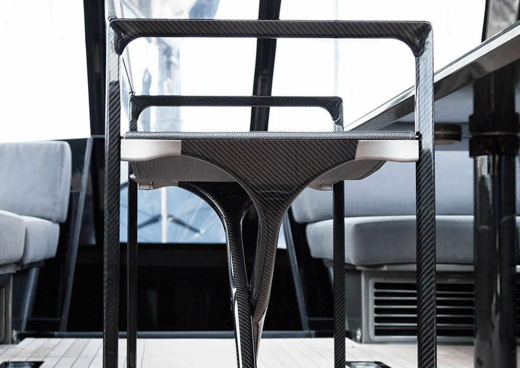 Remarkably lightweight due to the autoclave-cured carbon and painstaking attention to detail in saving every gram of metalwork, the chairs still retain extraordinary strength and durability—much like the high-performance machines of the Formula 1 world. These chairs are more than just furniture; they are a masterclass in design and engineering, making them an unparalleled addition to any yacht or high-end home.