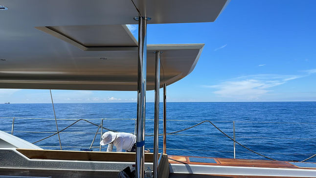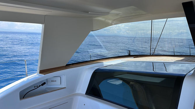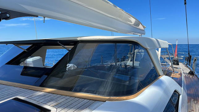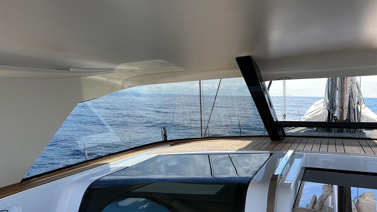 While the practical benefits of a canvas bimini on a sailing yacht are undeniable, a composite hardtop takes the experience to a whole new level. It doesn’t just enhance the yacht’s appearance—it transforms the entire living experience for both guests and crew. A well-designed hardtop extends the interior space outdoors, significantly boosting comfort and enjoyment in all seasons. That’s why S/Y Hevea required two: one over the cockpit to create a more spacious living area, and another over the helm for protection from the elements.