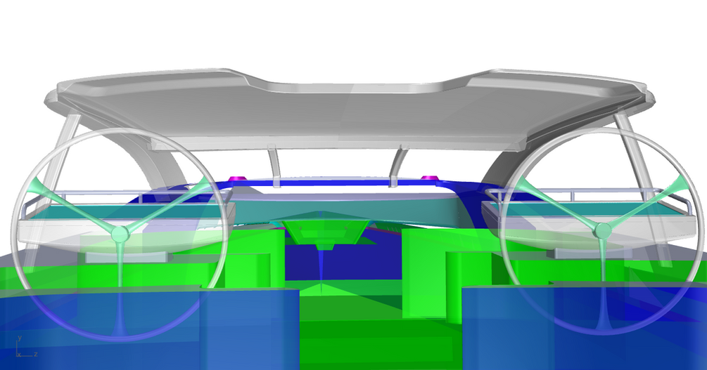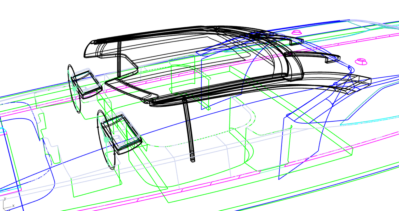 3DT created precise 3D models that were incorporated into the boat’s overall design, ensuring the bimini seamlessly integrated with the yacht’s lines. Heights were verified, additional design elements like lighting were added, and shapes were refined to complement the boat’s aesthetic. A full-size mock-up was CNC machined and mounted on board to confirm the design’s visual and functional alignment.