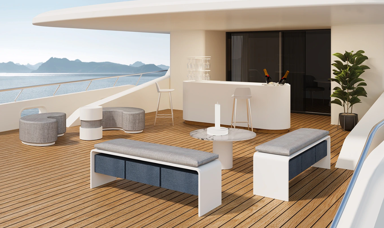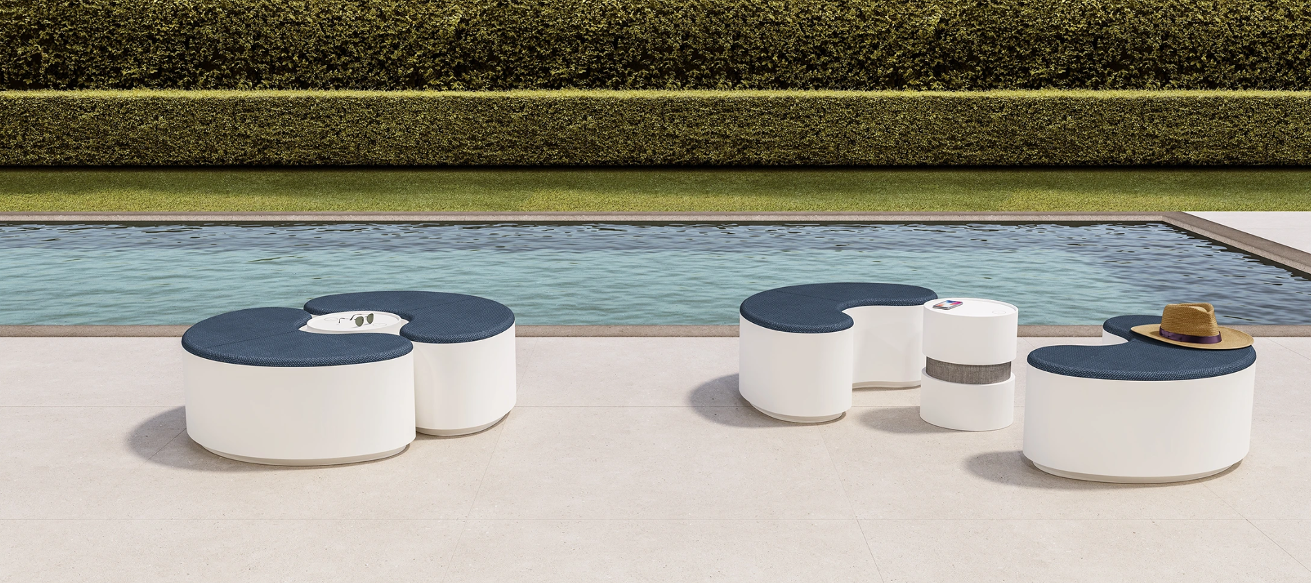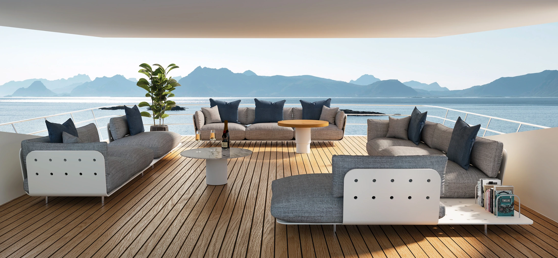 Thanks to its modularity, SeaScape offers endless configurations with modular surfaces that create relaxing islands, adapting to any space and need, from the deck of a yacht to an elegant lounge area by the pool.