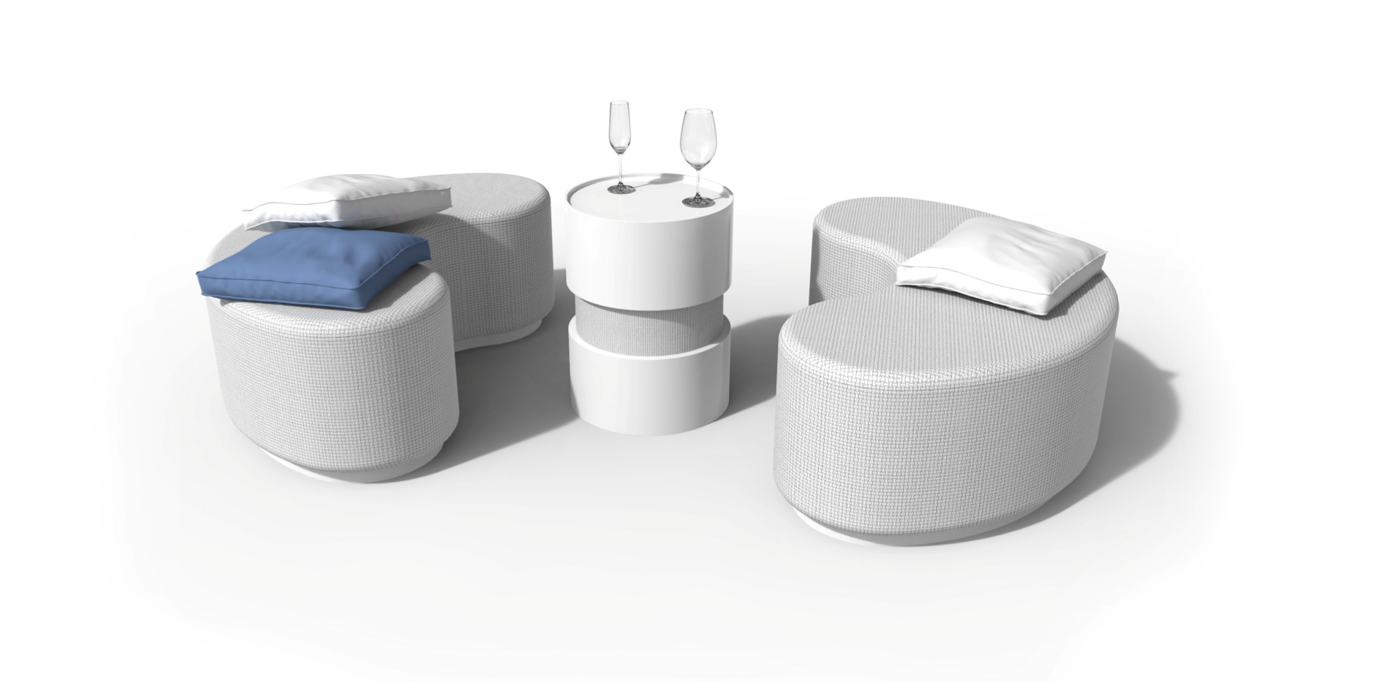 ShoreSet is the modular set by Nautys, designed to offer maximum flexibility in nautical and outdoor environments. Composed of four poufs and an elegant central table, ShoreSet stands out for its smart and functional design.