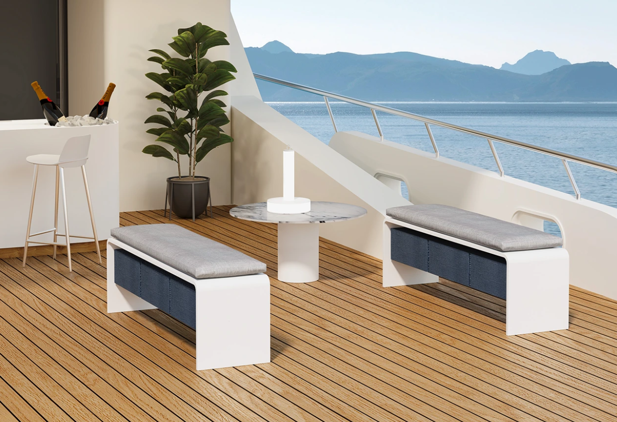 The BreezeLine bench by Nautys combines style and functionality in a design intended to enhance outdoor and nautical spaces with elegance. Its clean lines and weather-resistant materials make it an ideal seating option for terraces, decks, and outdoor relaxation areas.