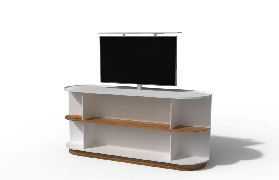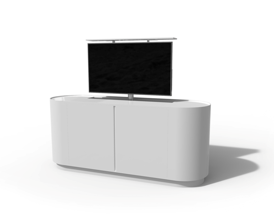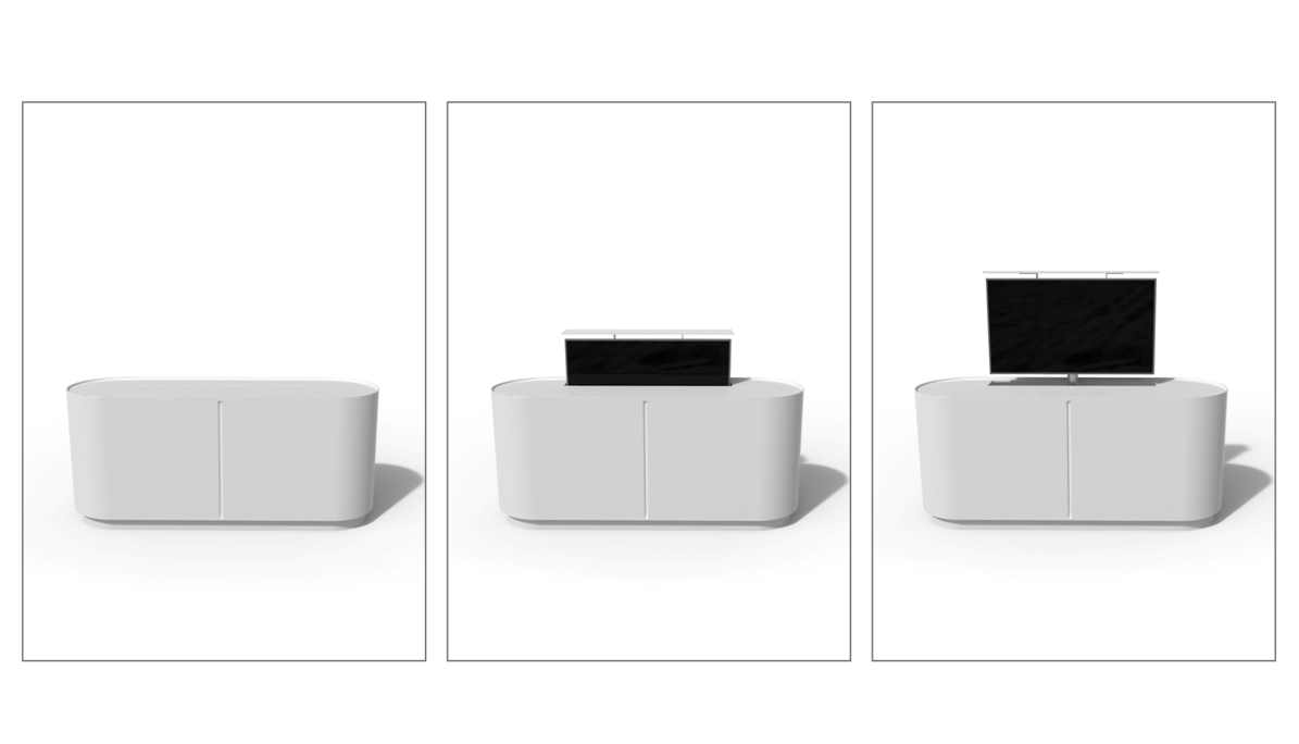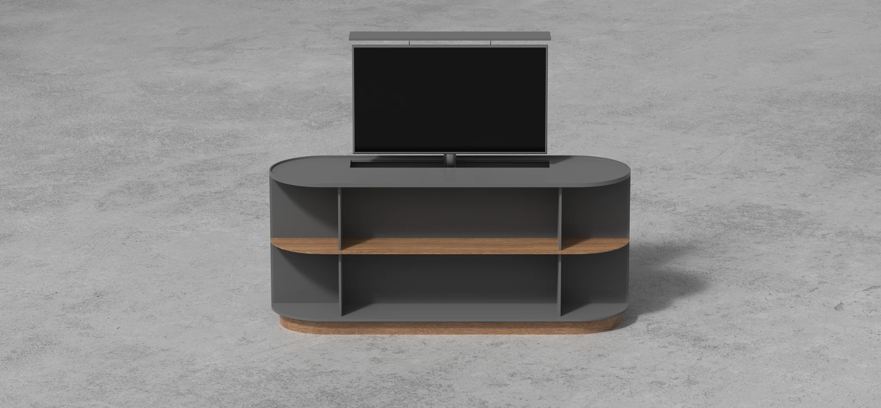 The lifting mechanism, smooth and silent, allows Elevia to transform into a complete multimedia station when needed, hiding the screen from view and maintaining a clean aesthetic when not in use. A versatile piece of furniture that combines practicality and refinement in any environment.