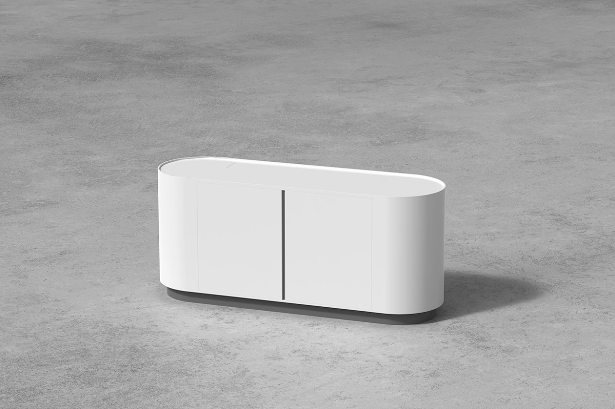 The Elevia console by Nautys is a sophisticated and innovative furniture solution, designed to house a retractable monitor thanks to its integrated electromechanical movement. The design is soft and rounded, available both in an open version and with doors.